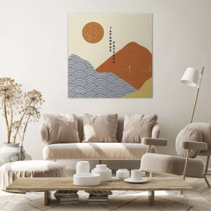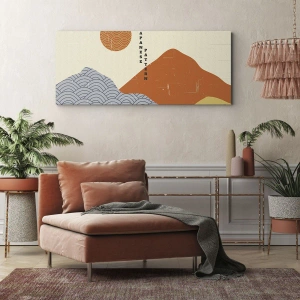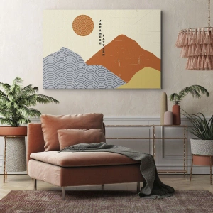 Schilderen op canvas - Japanse patronen met bergen, zon en minimalistische stijl - 70x50cm - In de Japanse spirit - Moderne wanddecoratie voor woonkamer en slaapkamer ARTTOR