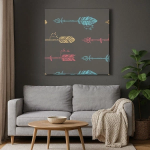 Het canvas wordt over het frame gespannen. De zijkanten en randen zijn bedrukt en zetten het beeld voort. De schilderij is klaar om aan de muur te hangen. Elk product heeft een hanger aan het frame en een montagekit (schroef + pin).