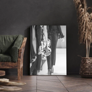 Het canvas wordt over het frame gespannen. De zijkanten en randen zijn bedrukt en zetten het beeld voort. De schilderij is klaar om aan de muur te hangen. Elk product heeft een hanger aan het frame en een montagekit (schroef + pin).