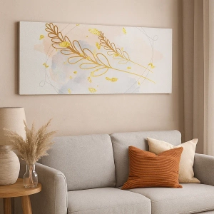 Het canvas wordt over het frame gespannen. De zijkanten en randen zijn bedrukt en zetten het beeld voort. De schilderij is klaar om aan de muur te hangen. Elk product heeft een hanger aan het frame en een montagekit (schroef + pin).