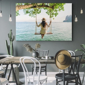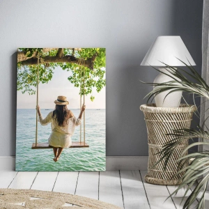 Het canvas wordt over het frame gespannen. De zijkanten en randen zijn bedrukt en zetten het beeld voort. De schilderij is klaar om aan de muur te hangen. Elk product heeft een hanger aan het frame en een montagekit (schroef + pin).