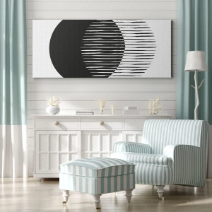 Het canvas wordt over het frame gespannen. De zijkanten en randen zijn bedrukt en zetten het beeld voort. De schilderij is klaar om aan de muur te hangen. Elk product heeft een hanger aan het frame en een montagekit (schroef + pin).