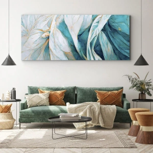 Schilderen op canvas - Blauwe abstractie met een gouden motief - 50x70 cm