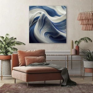 Vloeiendheid van blauw en wit is een buitengewoon schilderij op canvas dat harmonie en verfijning combineert. Het toont abstracte golven in blauw- en wittinten, die met elkaar verweven zijn en een dynamische en stijlvolle compositie creëren. Dit kunstwerk introduceert elegantie en een modern karakter in het interieur.