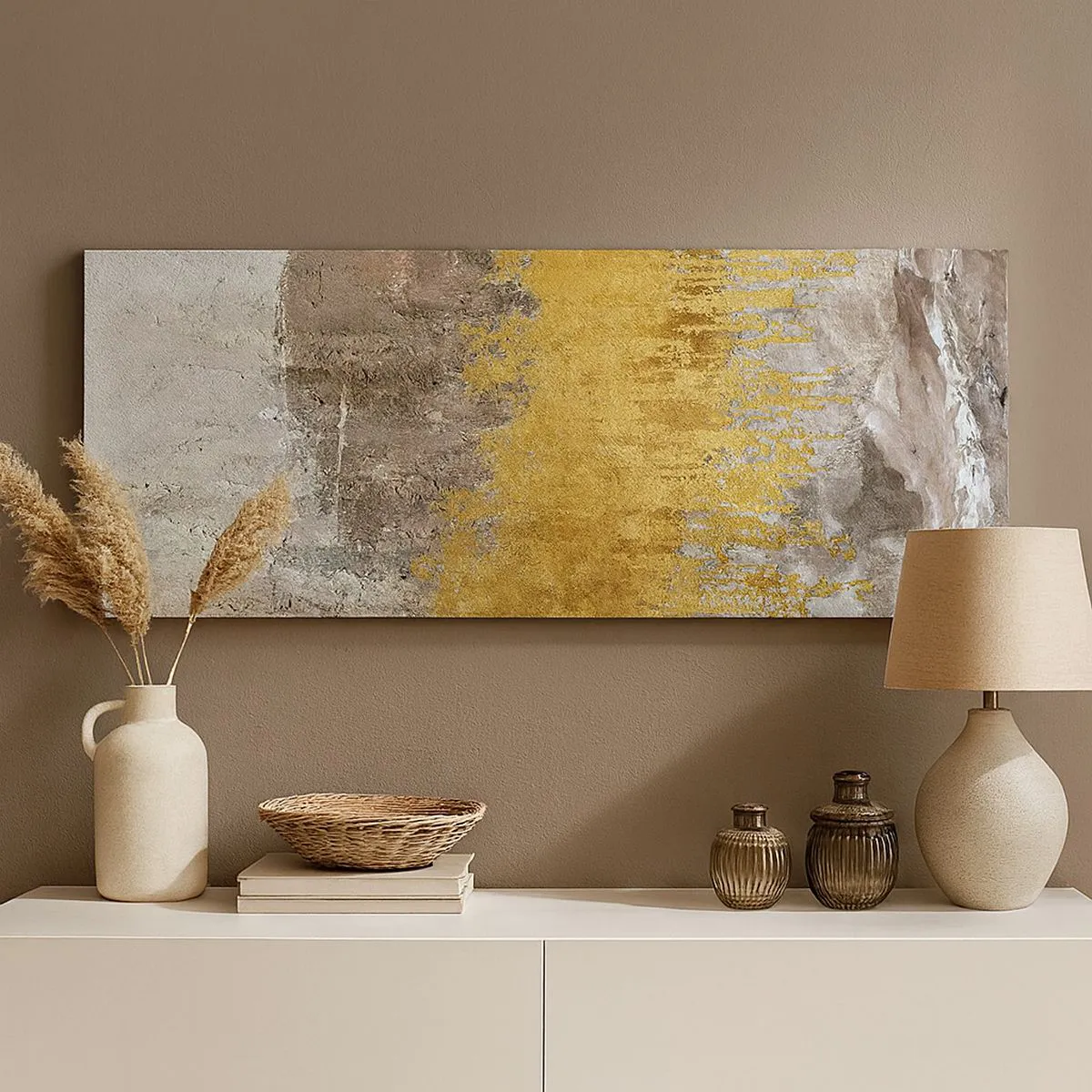Schilderen op canvas - Een gouden explosie - 100x40 cm