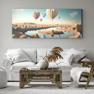 Het canvas wordt over het frame gespannen. De zijkanten en randen zijn bedrukt en zetten het beeld voort. De schilderij is klaar om aan de muur te hangen. Elk product heeft een hanger aan het frame en een montagekit (schroef + pin).