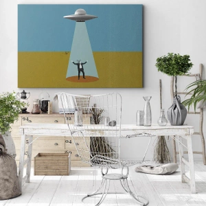 Het canvas wordt over het frame gespannen. De zijkanten en randen zijn bedrukt en zetten het beeld voort. De schilderij is klaar om aan de muur te hangen. Elk product heeft een hanger aan het frame en een montagekit (schroef + pin).
