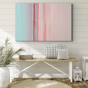 Het canvas wordt over het frame gespannen. De zijkanten en randen zijn bedrukt en zetten het beeld voort. De schilderij is klaar om aan de muur te hangen. Elk product heeft een hanger aan het frame en een montagekit (schroef + pin).