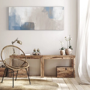 Het canvas wordt over het frame gespannen. De zijkanten en randen zijn bedrukt en zetten het beeld voort. De schilderij is klaar om aan de muur te hangen. Elk product heeft een hanger aan het frame en een montagekit (schroef + pin).