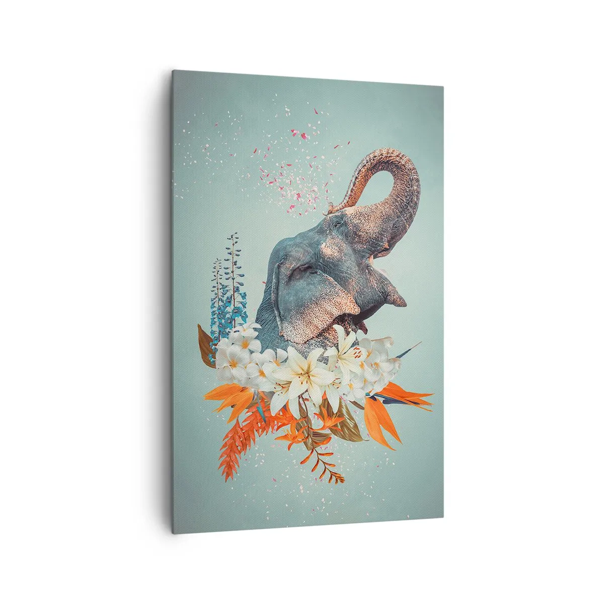 Het canvas wordt over het frame gespannen. De zijkanten en randen zijn bedrukt en zetten het beeld voort. De schilderij is klaar om aan de muur te hangen. Elk product heeft een hanger aan het frame en een montagekit (schroef + pin).