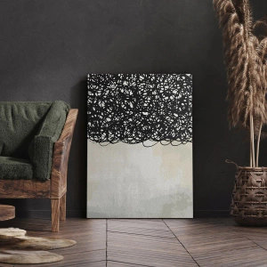 Het canvas wordt over het frame gespannen. De zijkanten en randen zijn bedrukt en zetten het beeld voort. De schilderij is klaar om aan de muur te hangen. Elk product heeft een hanger aan het frame en een montagekit (schroef + pin).