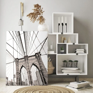 • Brug, Architectuur, New York, Architectuur, steden, bruggen, Voor op kantoor, voor de studeerkamer, voor de eetkamer, voor de hal, voor de woonkamer, voor de slaapkamer, Wit, bruin, grijs, Plein