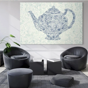 Het schilderij "Tea Charm" voert ons mee naar een wereld van elegante klassiekers. Het toont een rijkelijk versierde theepot tegen een achtergrond van subtiele bloemenpatronen. Lijn en vorm komen hier samen in een harmonieuze compositie, waardoor een opvallende vintage afbeelding ontstaat. Een delicaat kleurenpalet, gebaseerd op gedempte beige- en blauwtinten, benadrukt de subtiliteit van de weergave en geeft het geheel een gevoel van lichtheid. Het ontwerp van de theepot is uitgevoerd met een lineaire techniek, met veel aandacht voor detail, wat de afbeelding een artistiek karakter geeft. Dit patroon trekt de aandacht dankzij de ongewone combinatie van klassiek design en modern vakmanschap. Zo'n schilderij kan associaties oproepen met het traditionele ritueel van het theedrinken en een subtiel symbool worden van alledaagse geneugten. De bloemenpatronen die de vorm van het vat verweven, zijn ingewikkeld getekende lijnen die doen denken aan getekende afbeeldingen, afgewerkt met ongelooflijke precisie.
