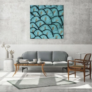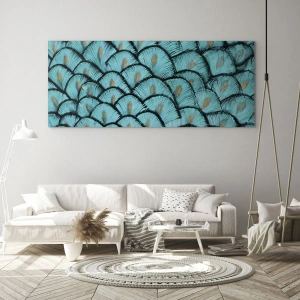 • Veren, Dieren, Pauw, Abstracties, Voor op kantoor, voor de studeerkamer, voor de eetkamer, voor de hal, voor de woonkamer, voor de slaapkamer, Zwart, blauw, goud, Panoramisch