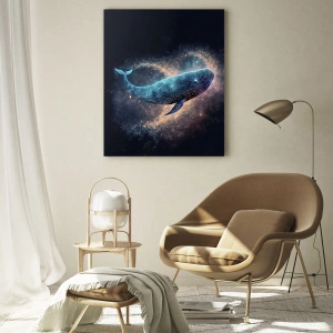 - Een visualisatie van een ruimtewalvis die tussen sterren en nevels zweeft. Het schilderij combineert thema's uit de natuur met fantasie en creëert zo een unieke sfeer van mysterieuze ruimte. Ideaal als interieurdecoratie.