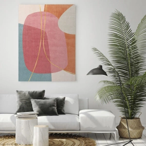 Deze abstracte vorm bekoort met zijn pastelkleurenpalet en eenvoud van boodschap. De vormen zijn zacht en vloeien vloeiend in elkaar over, waardoor het schilderij een sfeer van rust en harmonie creëert. Het past perfect bij interieurs met een moderne, Scandinavische of boho-stijl.