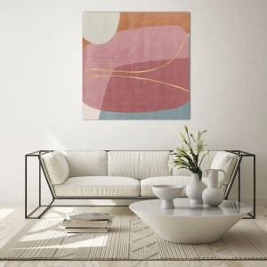 - Een schilderij met delicate pastelkleuren, onregelmatige vormen en gouden lijnen. Deze artistieke compositie is perfect voor moderne en gezellige ruimtes zoals woonkamers, slaapkamers of kinderkamers.