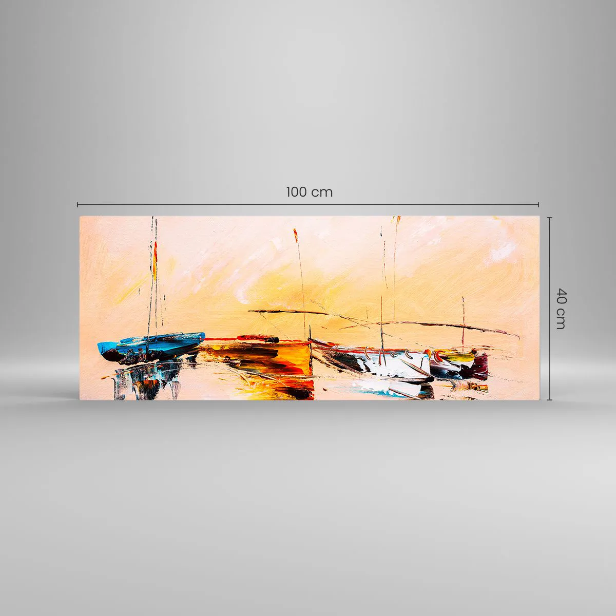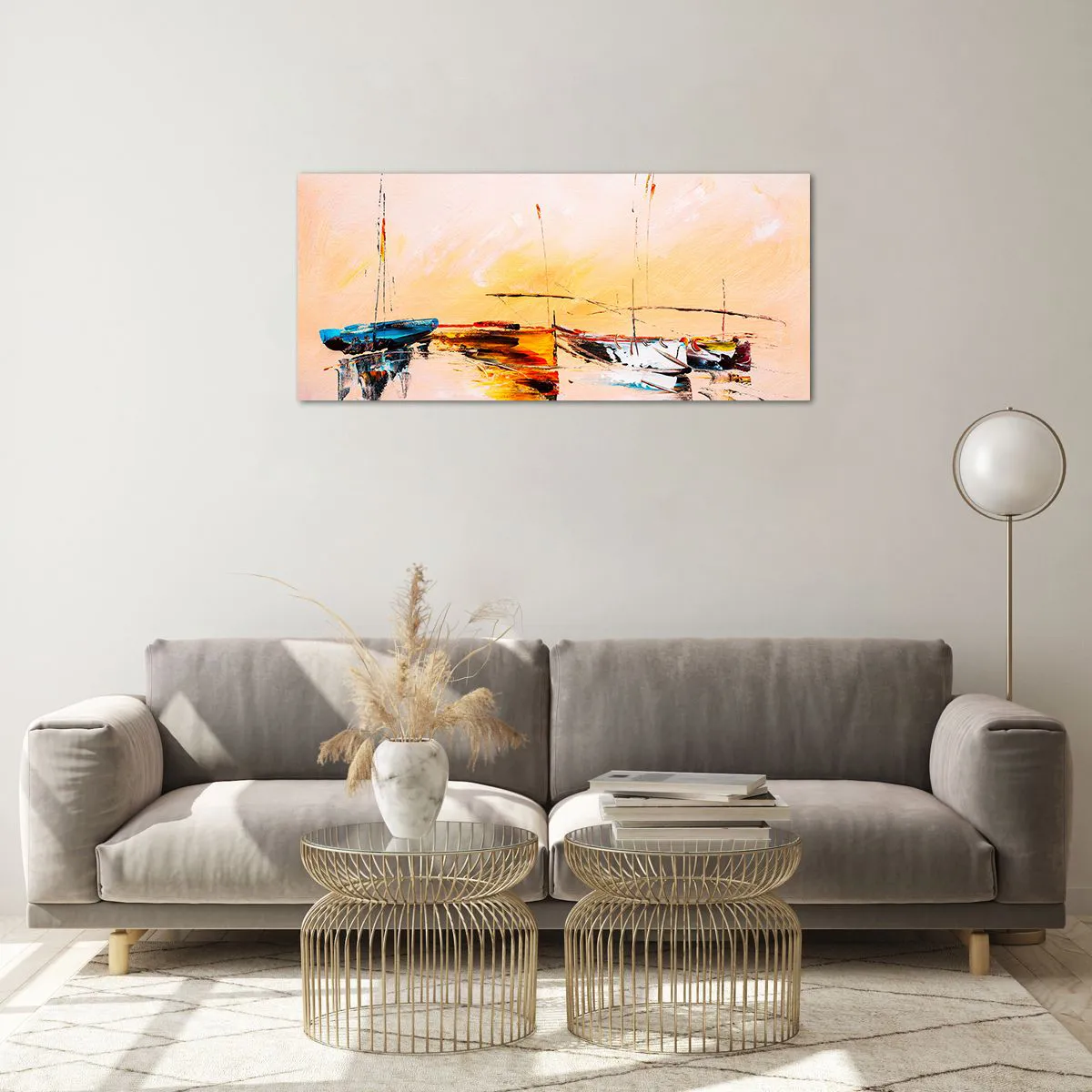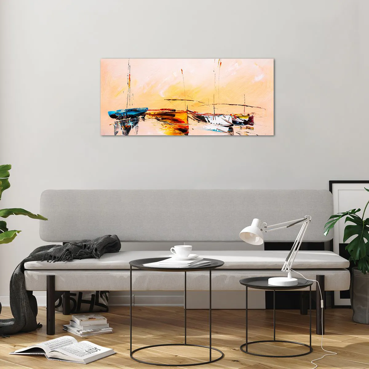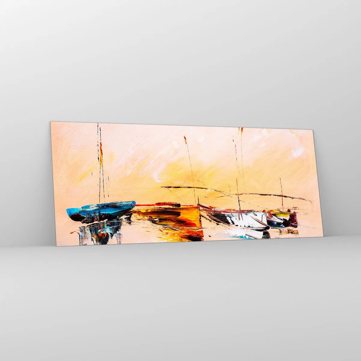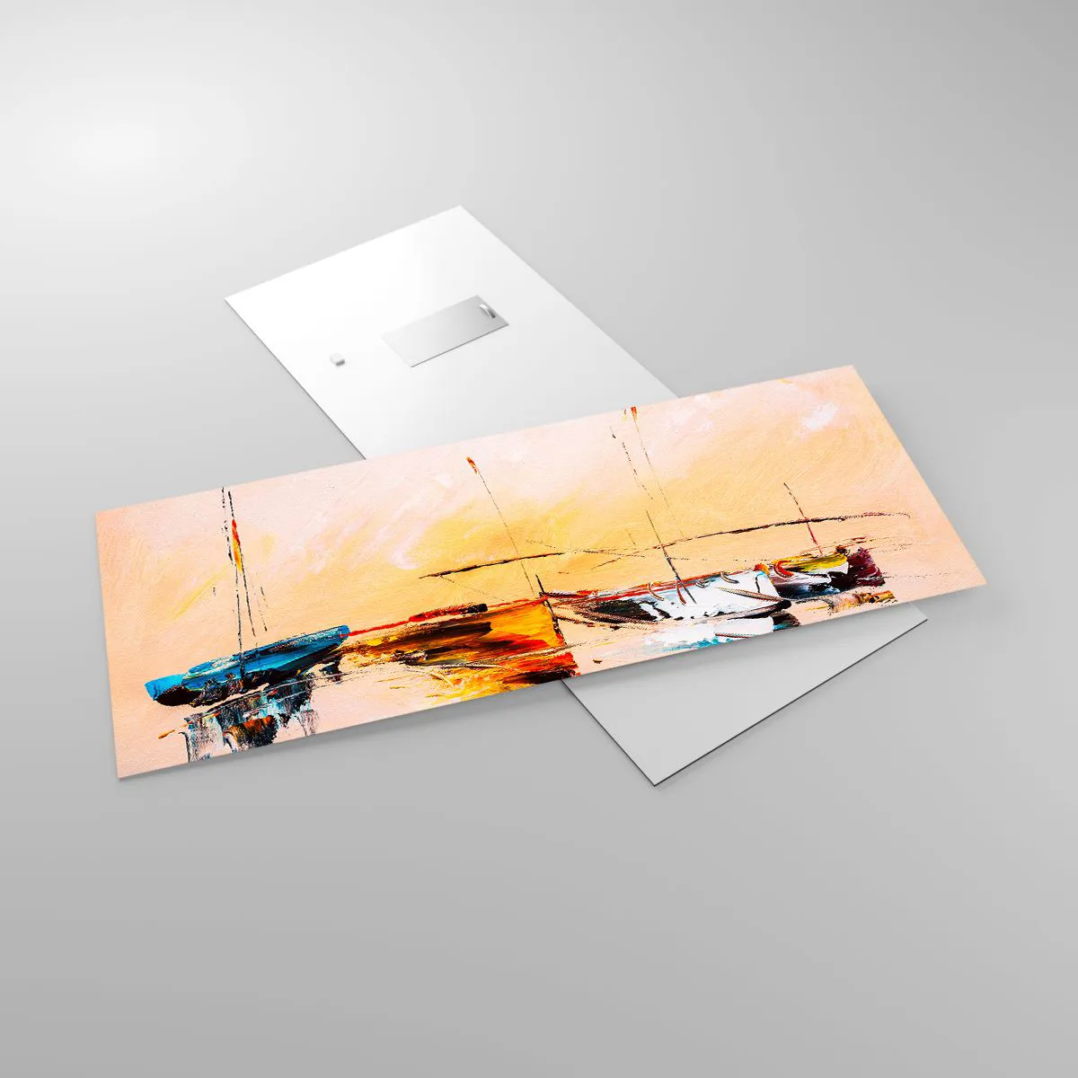 Schilderen op glas - Avond in de jachthaven - 100x40 cm