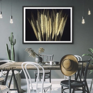 - Deze rustieke poster toont gouden tarwearen tegen een zwarte achtergrond. Een perfecte aanvulling op elk door de natuur geïnspireerd interieur.