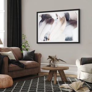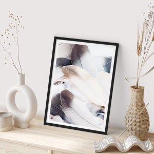 • De poster is subtiel gecomponeerd met lichte en donkere veren. De lichtheid en delicate texturen geven het een elegante, minimalistische uitstraling, perfect voor een modern interieur.