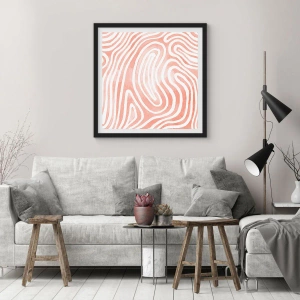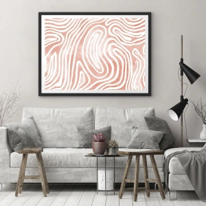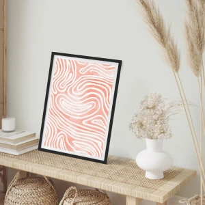 Poster in een zwarte lijst - Abstracte lijnen in tinten zalm en wit - 50x70cm - In het koraallabyrint - Moderne wanddecoratie voor woonkamer en slaapkamer ARTTOR