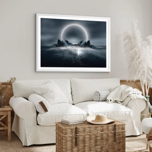• Futurisme, Storm, Maan, Fantasie, ruimte en astronomie, landschappen, Voor op kantoor, voor de studeerkamer, voor de eetkamer, voor de hal, voor de woonkamer, voor de slaapkamer, Zwart grijs, Horizontaal