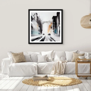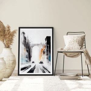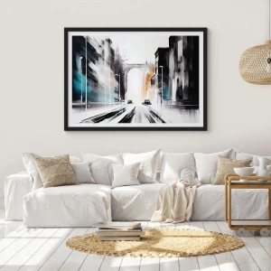 Poster in een zwarte lijst - Abstract stadsgezicht met monumentale boog - 50x70cm - Stadsstudie: architectuur en beweging - Moderne wanddecoratie voor woonkamer en slaapkamer ARTTOR