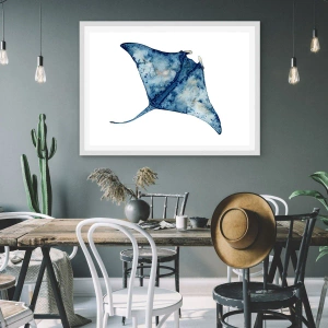 Poster in een witte lijst - Leven in blauw - 91x61 cm