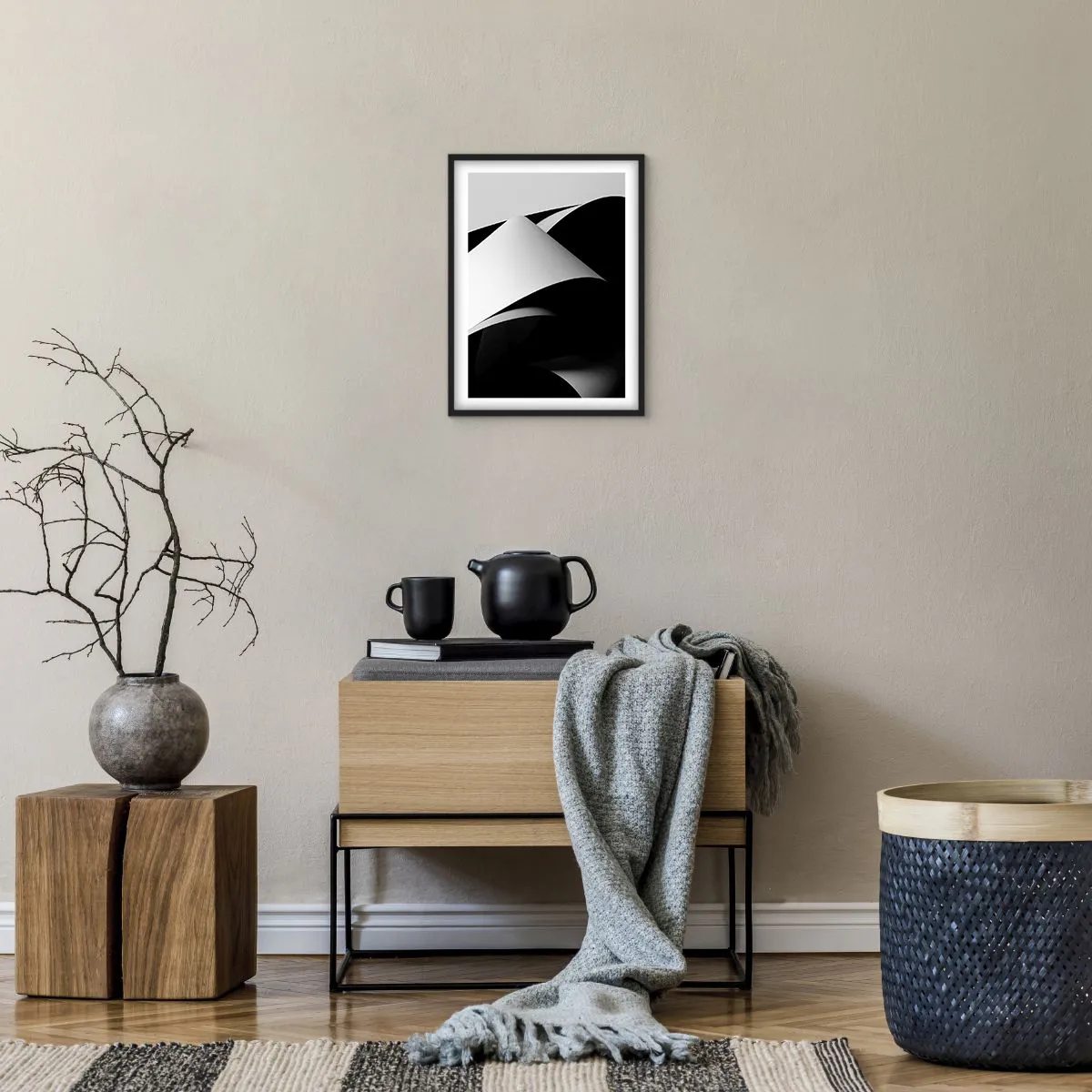 Poster in een zwarte lijst - Lichtvlakken uit de diepten van de schaduw - 30x40 cm