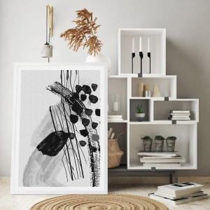 Poster in een witte lijst - Zwart-wit organische abstractie - 40x40 cm