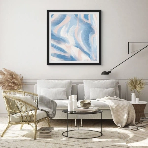 Poster in een zwarte lijst - Blauwe golven - 50x40 cm