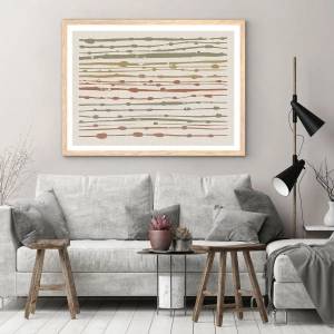 Een poster in een licht eiken lijst - Muzieknotatie van kleuren - 100x70 cm