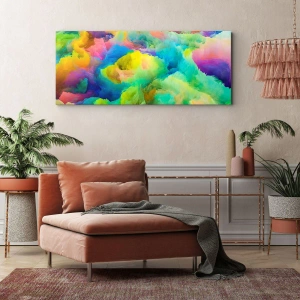 De regenboogkleuren van het schilderij brengen optimisme en frisheid in elke opstelling. Het moderne ontwerp maakt het perfect geschikt voor zowel minimalistische als meer eclectische interieurs. Deze artistieke compositie is geschikt voor zowel de woonkamer, slaapkamer als kantoor, waar het een blikvanger kan worden.