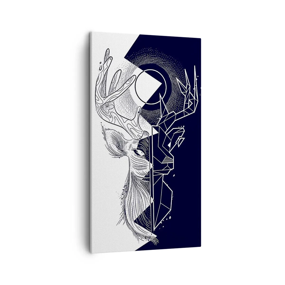 Het canvas wordt over het frame gespannen. De zijkanten en randen zijn bedrukt en zetten het beeld voort. De schilderij is klaar om aan de muur te hangen. Elk product heeft een hanger aan het frame en een montagekit (schroef + pin).