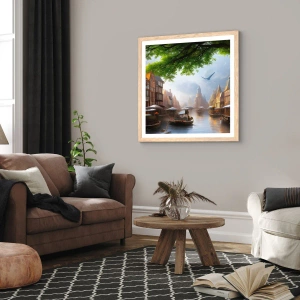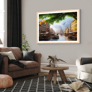 Een poster in een licht eiken lijst - Hollands stadsbeeld - 100x70 cm