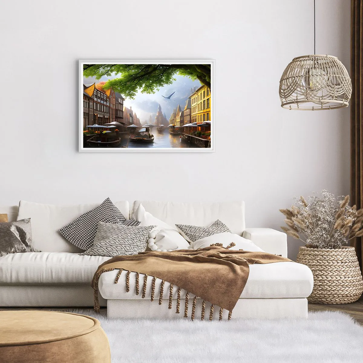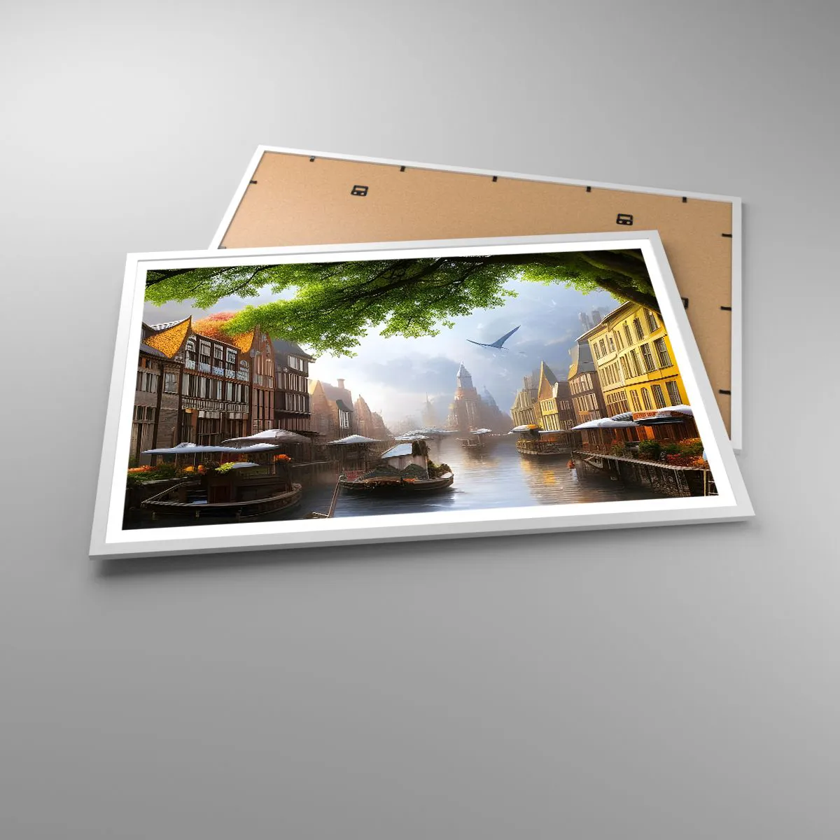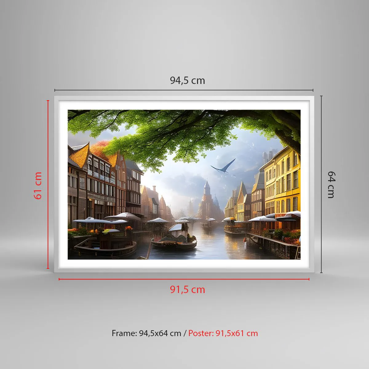 Poster in een witte lijst - Hollands stadsbeeld - 91x61 cm