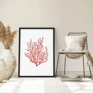 Poster in een zwarte lijst - Rood koraal op een witte achtergrond in een minimalistische stijl - 50x70cm - Koraal filigraan - Moderne wanddecoratie voor woonkamer en slaapkamer ARTTOR