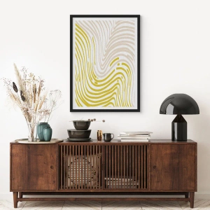 Poster in een zwarte lijst - Een abstracte compositie van golvende lijnen in tinten beige en geel. - 50x70cm - Een compositie met een zachte buiging - Moderne wanddecoratie voor woonkamer en slaapkamer ARTTOR