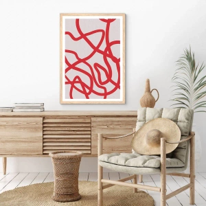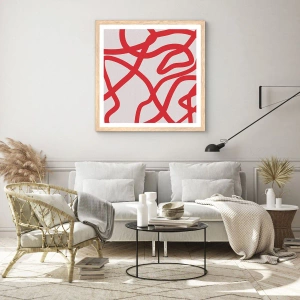 Een poster in een licht eiken lijst - Rood op wit - 50x40 cm