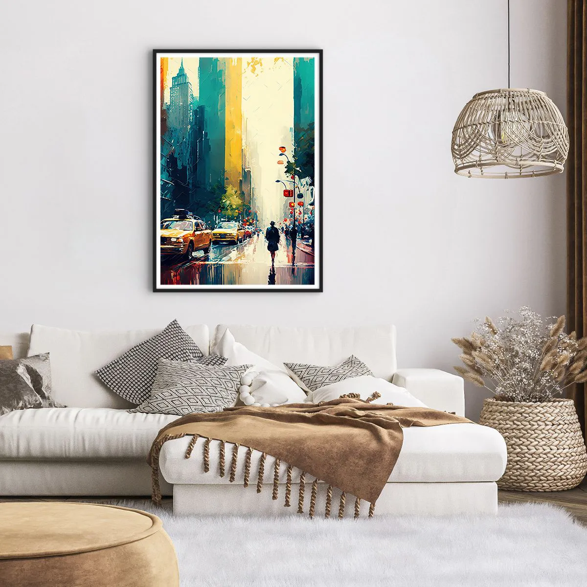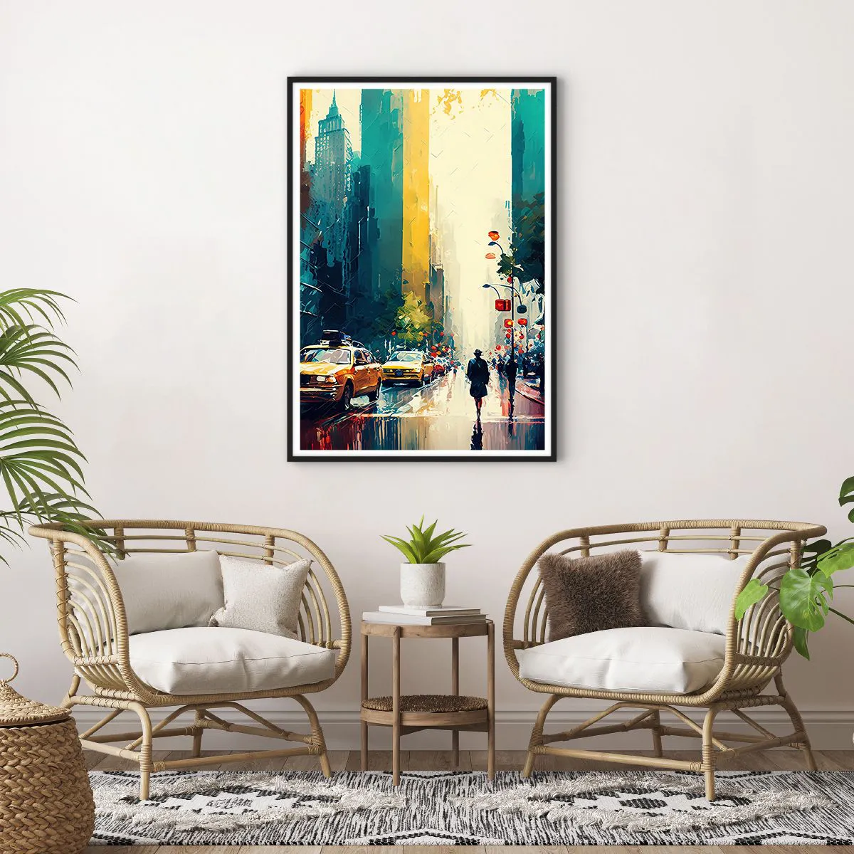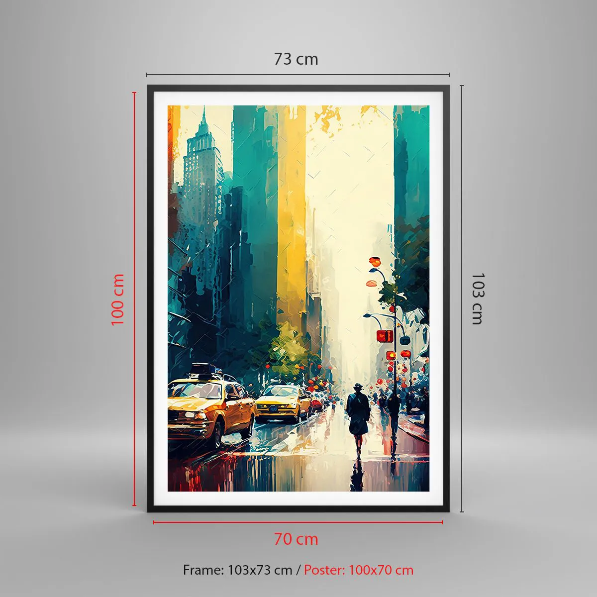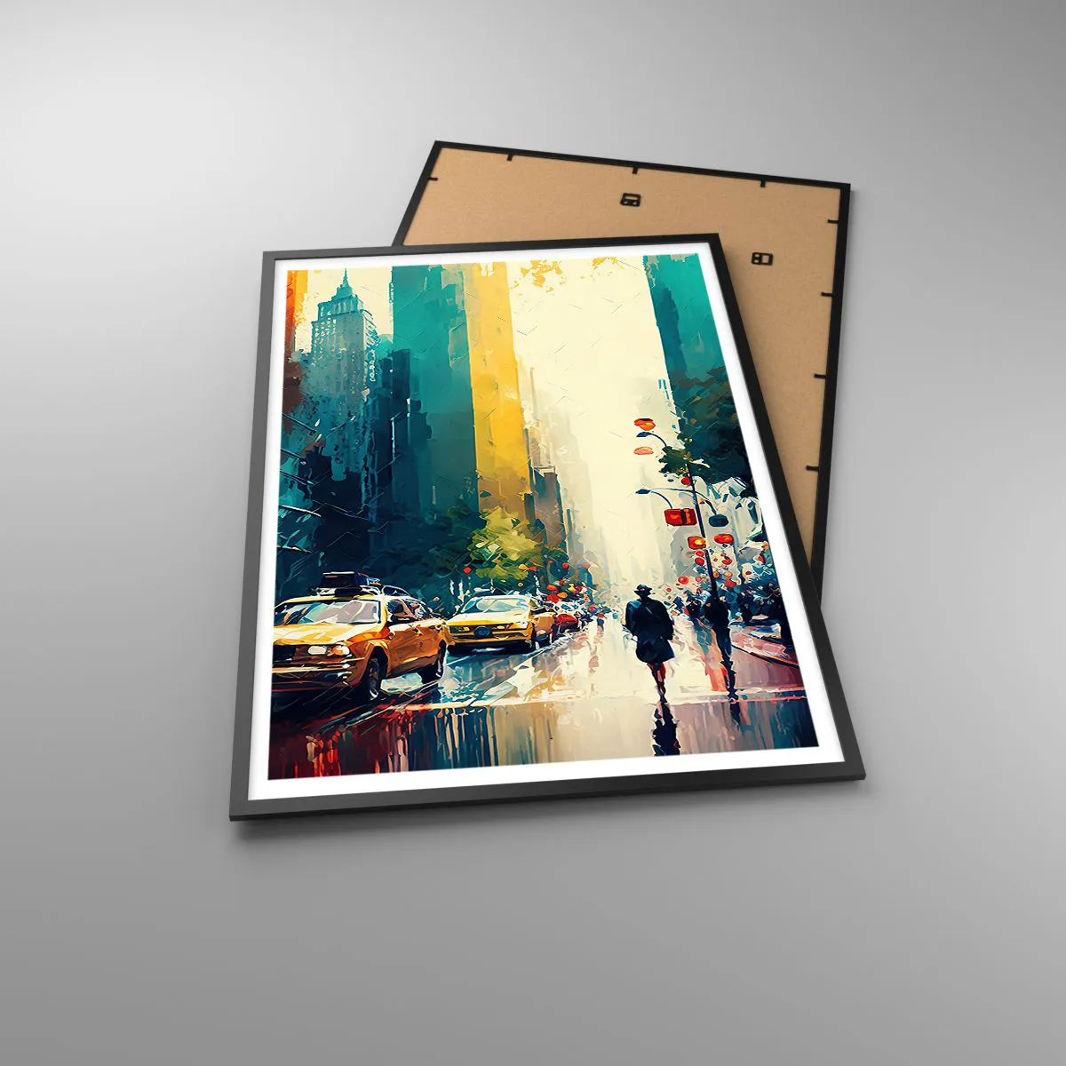 Poster in een zwarte lijst - New York – zelfs de regen is hier kleurrijk - 70x100 cm