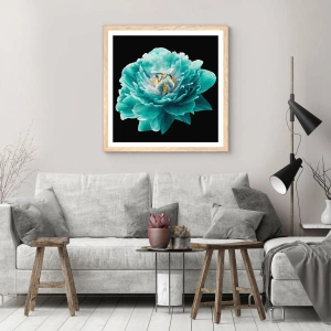 Een poster in een licht eiken lijst - Blauwe en gouden bloemblaadjes - 30x40 cm