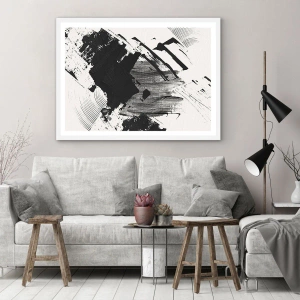 Poster in een witte lijst - Abstractie – expressie van zwart - 70x50 cm