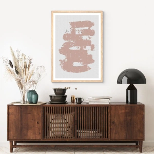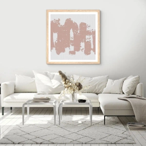 Een poster in een licht eiken lijst - Abstractie in zachtroze - 50x50 cm