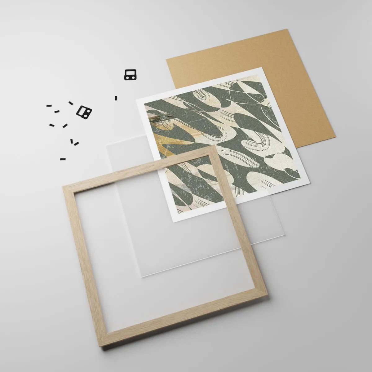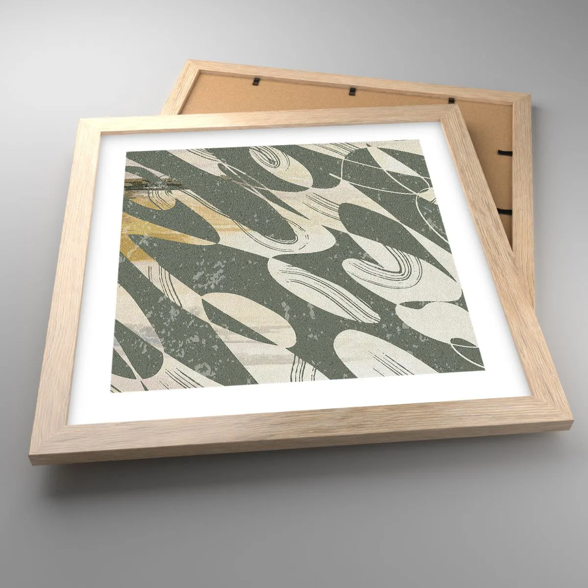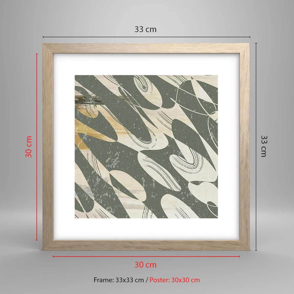 Een poster in een licht eiken lijst - Ritmische abstractie - 30x30 cm