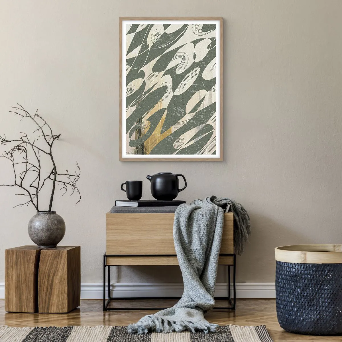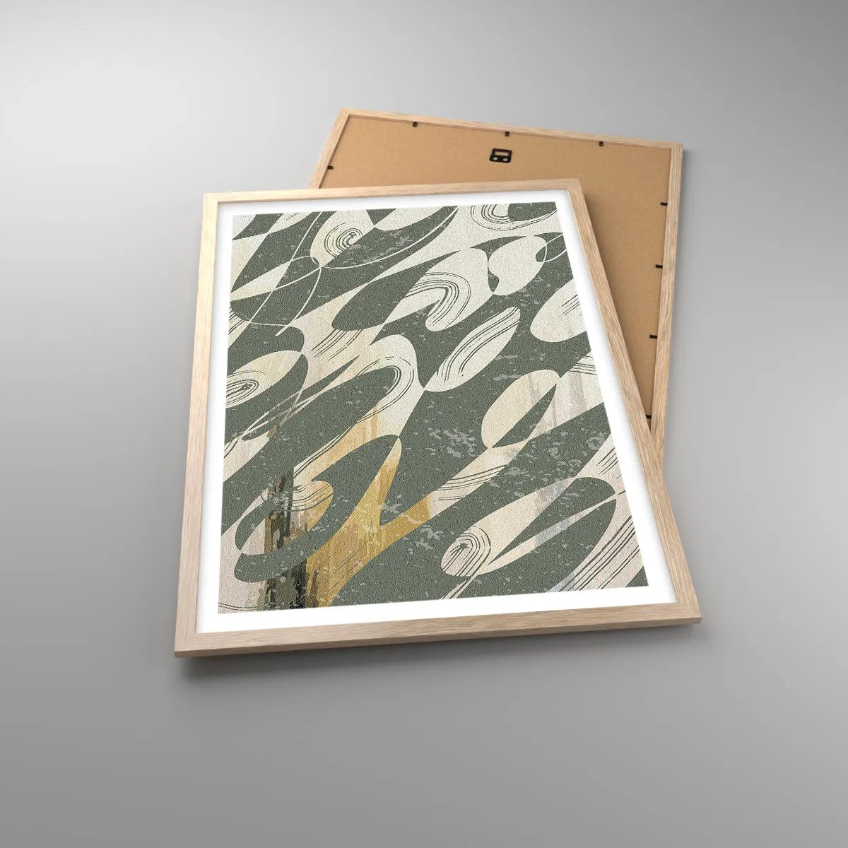 Een poster in een licht eiken lijst - Ritmische abstractie - 50x70 cm