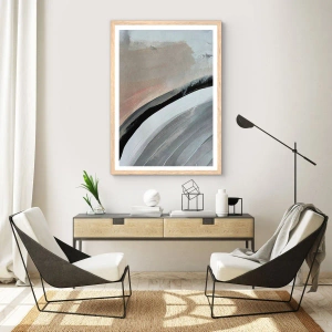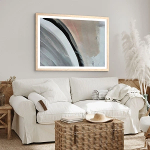 Een poster in een licht eiken lijst - Compositie: boog van zwart en grijs - 40x40 cm
