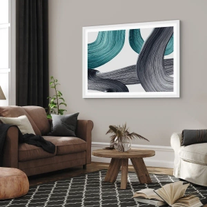 Poster in een witte lijst - Smaragdgroene en zwarte paden - 61x91 cm