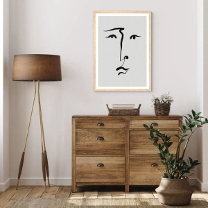 Een poster in een licht eiken lijst - Portret met één lijn - 70x100 cm