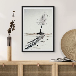 Poster in een zwarte lijst - Een minimalistische boom met abstracte wortels - 50x70cm - Winterse melancholie - Moderne wanddecoratie voor woonkamer en slaapkamer ARTTOR