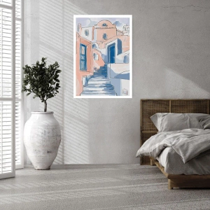 • Architectuur, Griekenland, Gebouwen, Architectuur, Pastel, Landschappen, Reizen, Kunst, Voor op kantoor, voor de studeerkamer, voor de eetkamer, voor de hal, voor de woonkamer, voor de slaapkamer, Wit, bruin, blauw, Verticaal